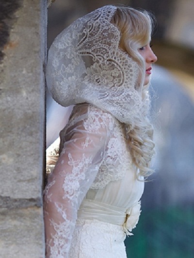 The white hood is often chosen by modern newlyweds for weddings in the church. For the wedding is better to choose not too intricate hairstyle, as under the shawl, it can lose shape. And under the hairstyle of complex design it is more difficult to choose a headdress. The easiest way to fix the veil on the hair, but not always its style covers the head sufficiently.