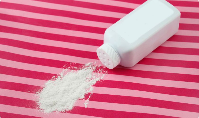 Talc or baby powder will also help clean the greasy collar. Liberally apply powder to the area and leave the coat in a horizontal position for the whole day. After that, using a special sponge with rubber fibers, remove excess talc. If the shiny area remains, repeat the procedure.