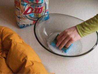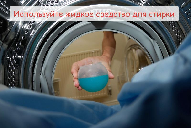 - Instead of the powder, choose a liquid detergent, it is well washed out of the padding pad and does not leave stains on the surface of the product. Well, if the tool will be for delicate fabrics. In addition, the composition should not be bleaching components or stain removers.