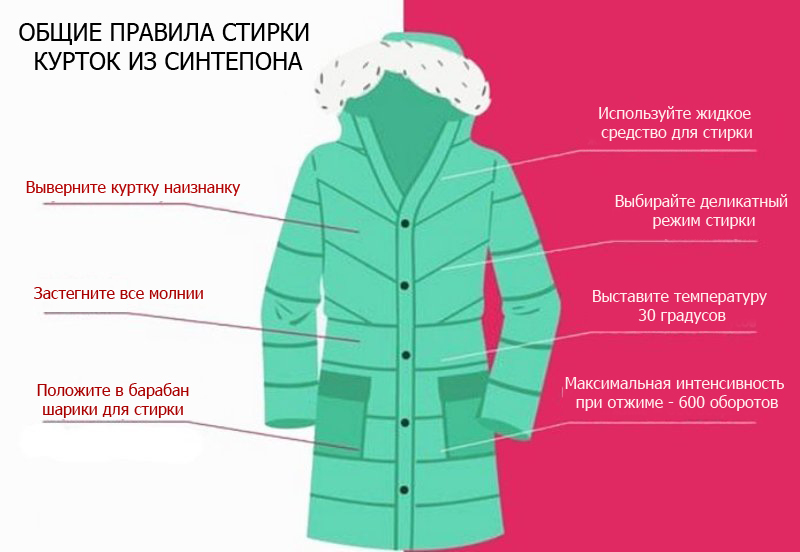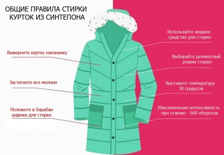 The synthetic winterizer is a non-woven synthetic material used for insulation that is embedded between the layers of the fabric of the product. In the process of machine washing, it can crumple, unevenly distributed, tear and clothing will lose its appearance. First you need learn tag in which the manufacturer indicated the type of upper fabric, as well as the temperature conditions at which washing, the possibility or prohibition of spinning, ironing and other nuances are possible.