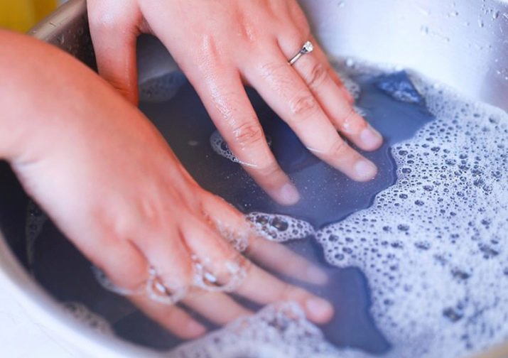 - Dilute a small amount of liquid detergent for gentle washing. It is better not to use laundry detergent, as it is poorly dissolved in non-hot water and there may be stains on the product. In addition, do not use bleach.