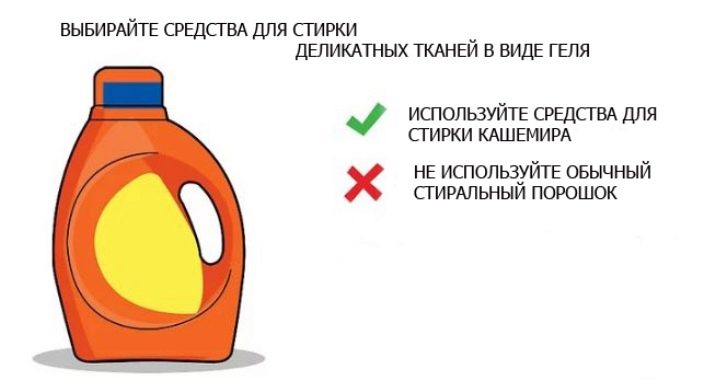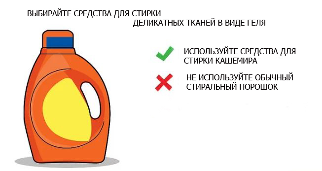 For hand washing of products from natural wool should not use ordinary laundry detergent. He eats too deep into the fibers of the fabric, and washing it out of natural wool material requires repeated rinsing, which may adversely affect the safety of the appearance of the product.Suitable agents are special powders or gels for wool and cashmere.