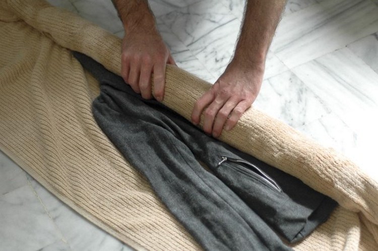 After washing, remove excess water from the product. This can be done in two ways. You can place the coat over the bathroom horizontally, spreading it on a wooden lattice and let it drain. If this is not possible, the coat is wrapped in a thick terry towel or cotton cloth.