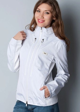 For everyday use, classic elongated models of windbreakers on a belt or drawstring are more suitable. Straight or fitted white windbreakers harmoniously look not only with sports suits, but also with romantic flared dresses and strict straight skirts.As shoes, you can choose slippers, sandals, sandals on a small wedge heel, shoes, etc.