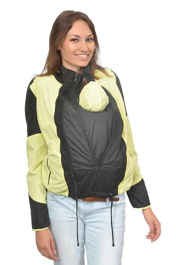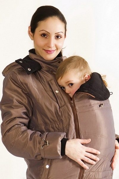 Multifunctional windbreaker, which is sure to come in handy to you even after the baby is born. This convenient and practical jacket is designed in such a way that it can simultaneously perform the role of a sling. Thus, the child will be comfortably arranged on your chest while you are walking or shopping.