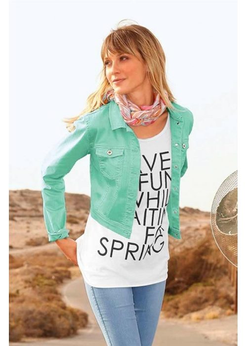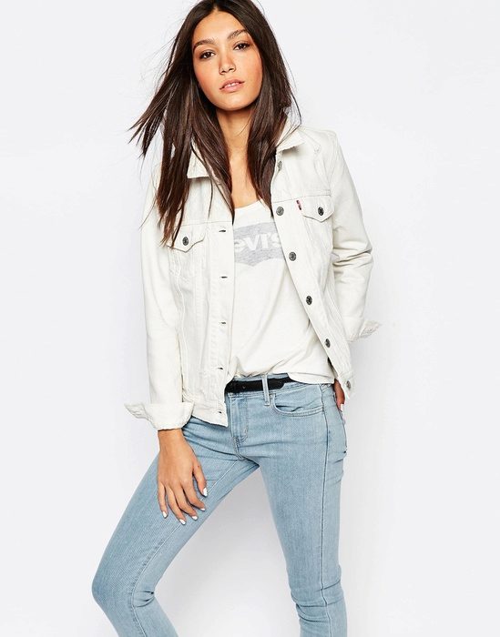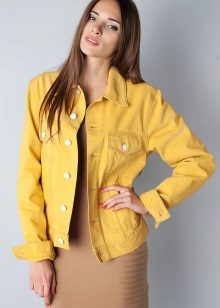 - If you had time to get bored with a denim of a classic blue color, take a look at the windbreaker of colored jeans. For example, snow-white denim jackets look very beautiful and gentle. In a bright turquoise, crimson or lemon denim windbreaker, you definitely will not go unnoticed.