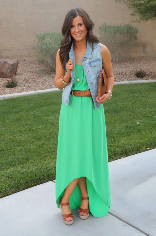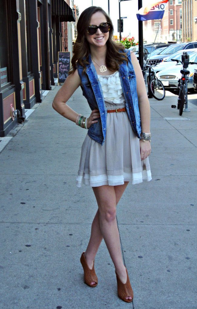 - Denim windbreaker with a light dress or sundress - this is a beautiful, bright combination for a warm summer day. This dress will suit your favorite sneakers, and elegant sandals with heels.
