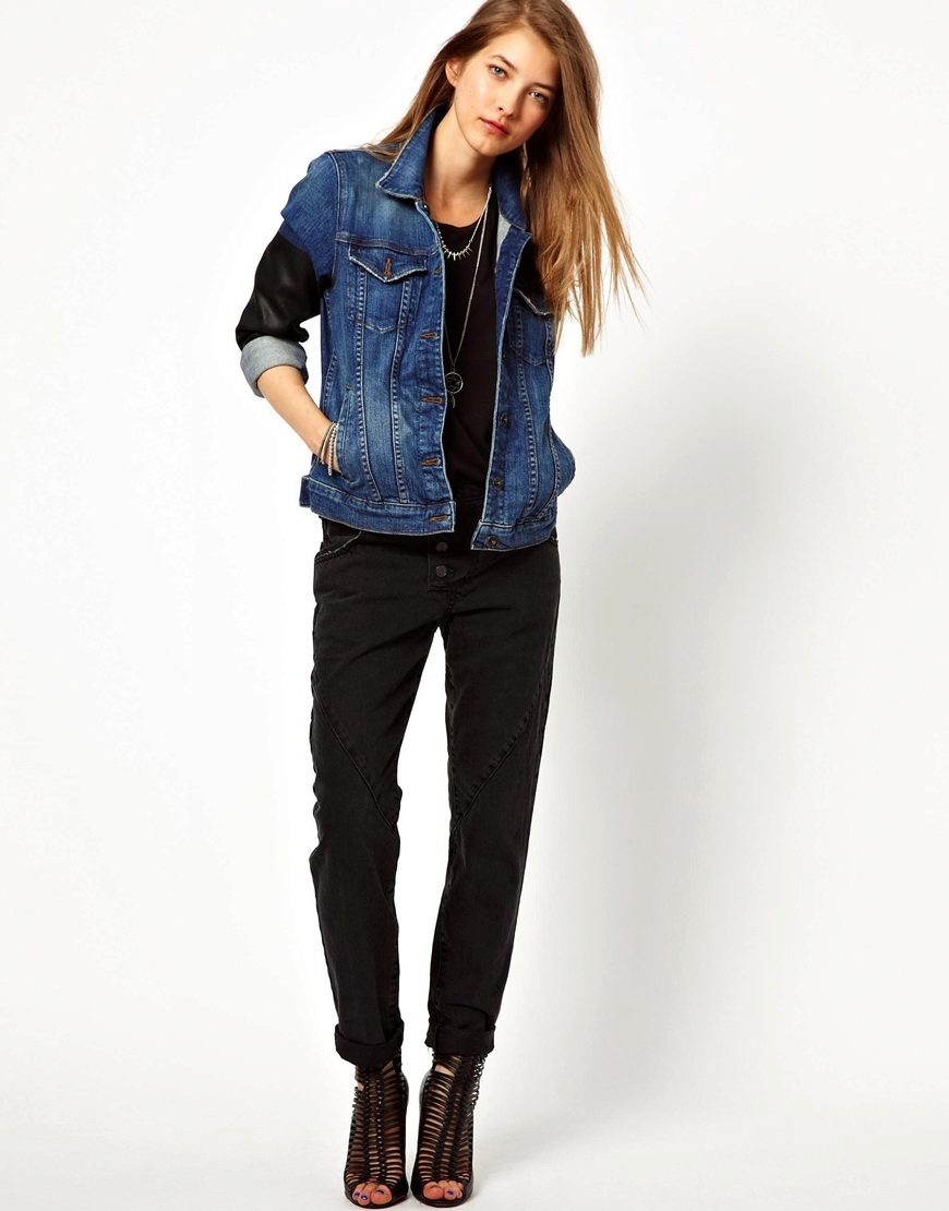 - For cool weather, insulated denim windbreaker would be an excellent option. Pay attention to the now fashionable quilted jackets and vests - they are not only incredibly warm and cozy, but also very stylish. Also interesting are the models combined from denim and other materials, such as leather, knitwear or raincoat.