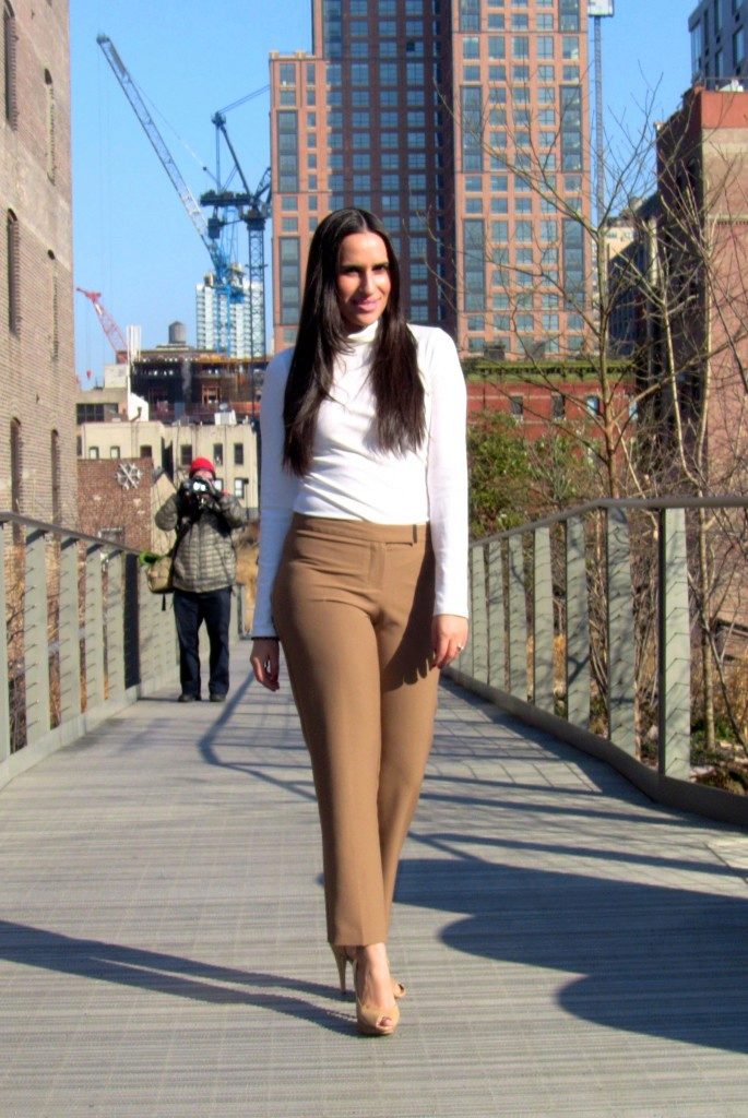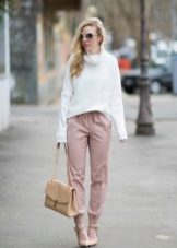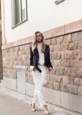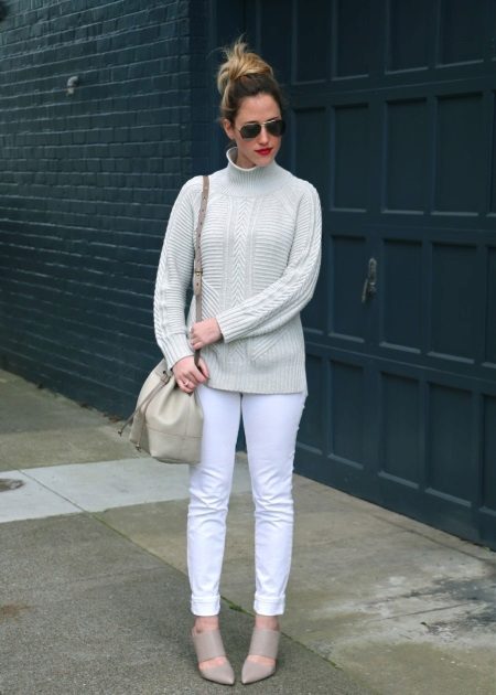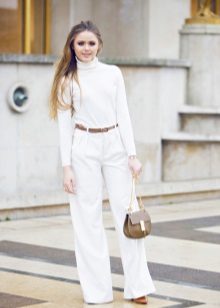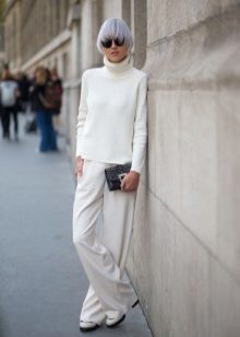 The compatibility of a white turtleneck with many things is difficult not to appreciate. · Let's start with the bottom of the ensemble. These can be pants strictly cut - straight silhouette, flared, pants with arrows, etc. In this way you can easily go to work.