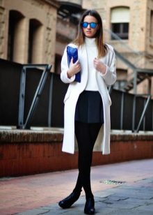 And now let's talk about color solutions. White turtleneck perfectly with neutral tones - black, beige, blue and gray. A combination of white bottom has a special charm. This is an image from the catwalks. The combination with bright colors is not inferior to these shades. You can choose any color from the spectrum.