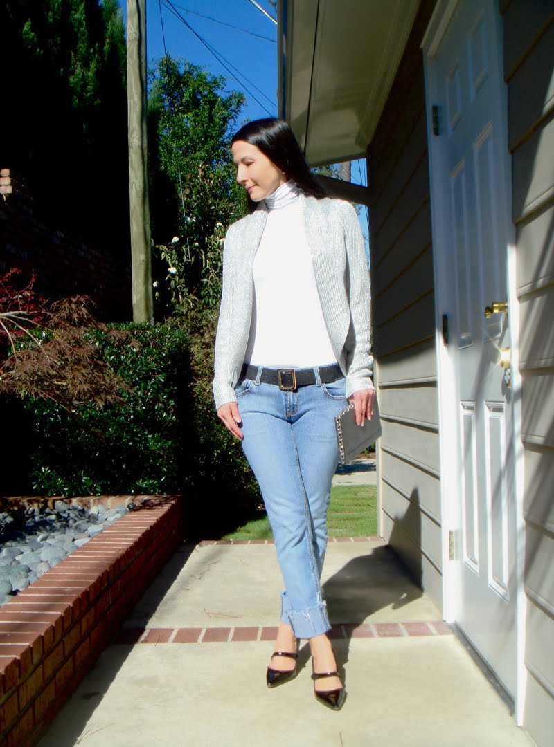 Jeans in combination with a turtleneck will easily fit a casual look. Choose jeans that are right for you, add a stylish belt. Here is a direct but fashionable image. Don't forget about a short-sleeved turtleneck - it fits perfectly into this image.