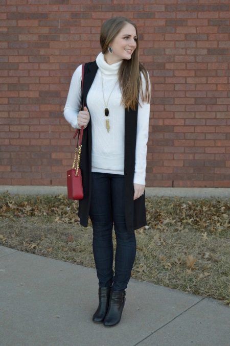From above turtlenecks you can wear jackets, jackets or vests. Top with strict lines will give you a presentable look, and vice versa, elongated stylish vests and jackets of free fit will give a bow to immediacy.
