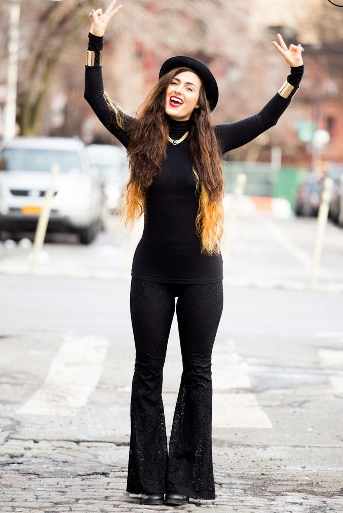 Do not forget to decorate your image with accessories - with a black turtleneck, gold and bright accessories will look good, as well as all sorts of beads, large bracelets and products on a long chain.