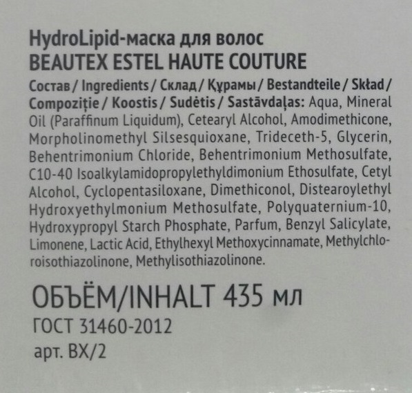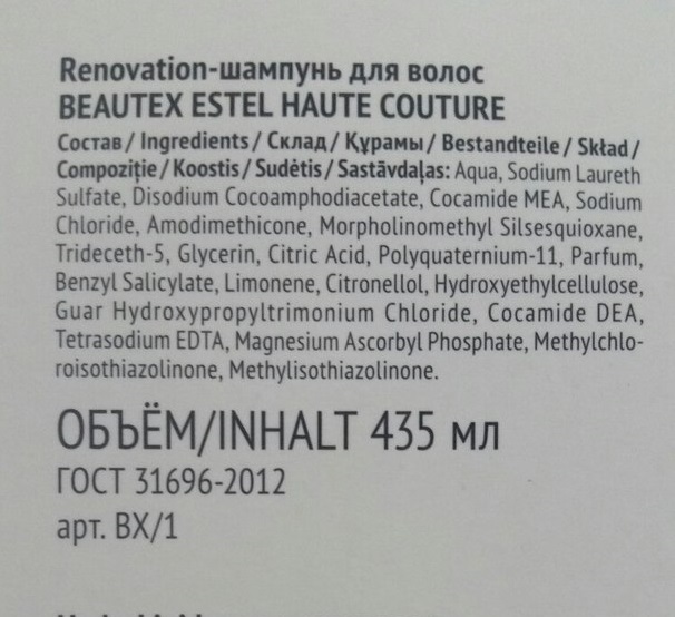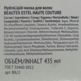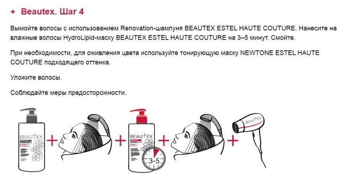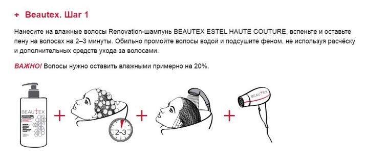 Instructions for use complex Beautex Estel Haute Couture simple.