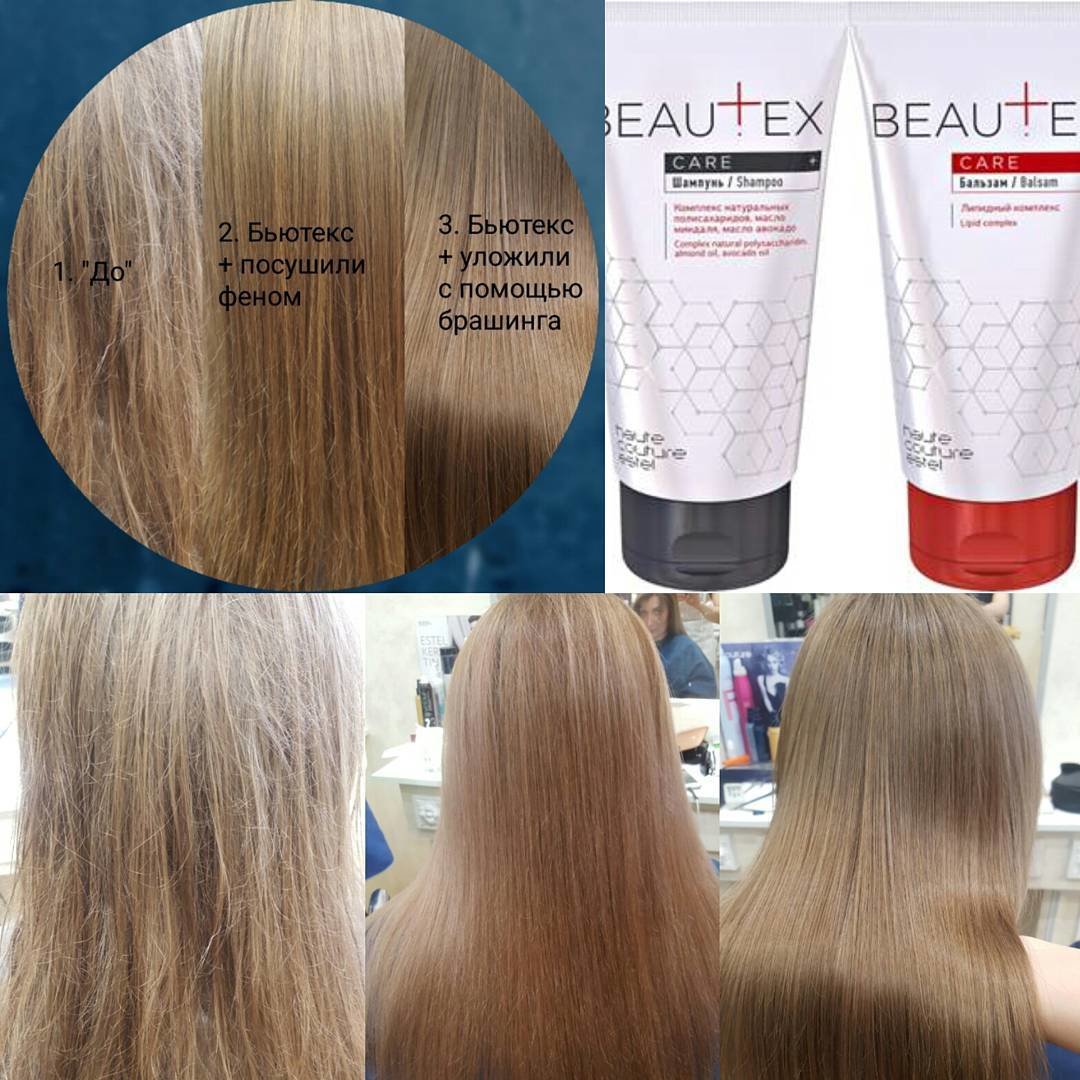Indisputable advantages of the complex Beautex is the healing of hair, which can be seen even externally. After the procedure, the curls are not confused and easier to comb, shine and stay up to two months soft, silky and docile.