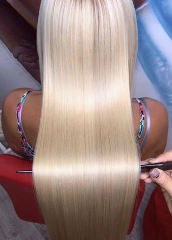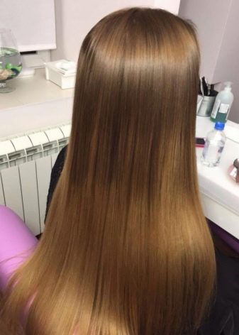 If you chose a cold-type procedure, the master applies a serum to each strand using a special syringe, and after 40–60 minutes - a sealing agent. After that, the mask is applied and the head is washed again. If your choice fell on the hot type, then after washing your head and applying the serum, the master uses a special thermal device, a hair iron, for the procedure.