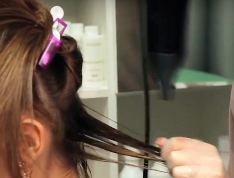 - Starting from the occipital region, distribute the Botox with a brush, leaving 1.5-2.0 cm at the roots. To comb. After processing the last strand, wait 15 minutes. Fully blow dry.