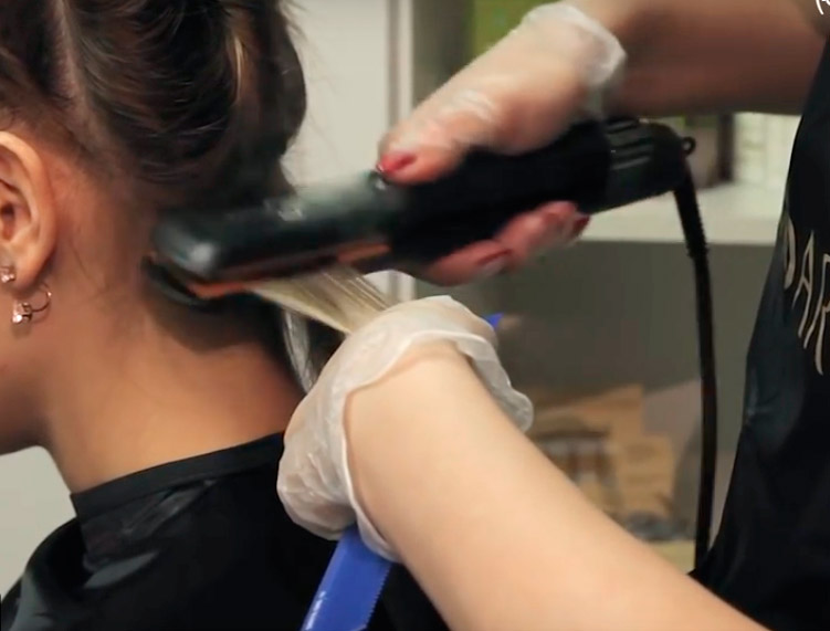 - Accurately from the occipital region with the help of an ironing pull all the small bundles of 5-6 times each. Do the same on the temporal and frontal zones, lastly on the bangs.