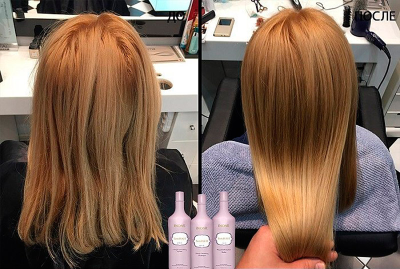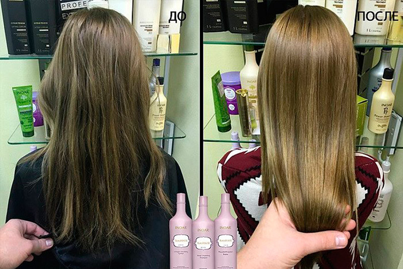 Hairdressers often prescribe Inoar botox after hard bleaching, frequent shading, various color stains, chemistry, flattening and other regular thermal effects.