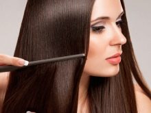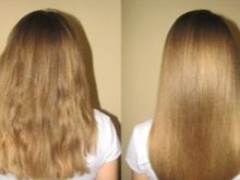 - Some formulations suggest a hot phase — in this case, the treated curls are straightened with a curling iron or ironing, each three to four times; the temperature regime is set with the characteristics of the hair;