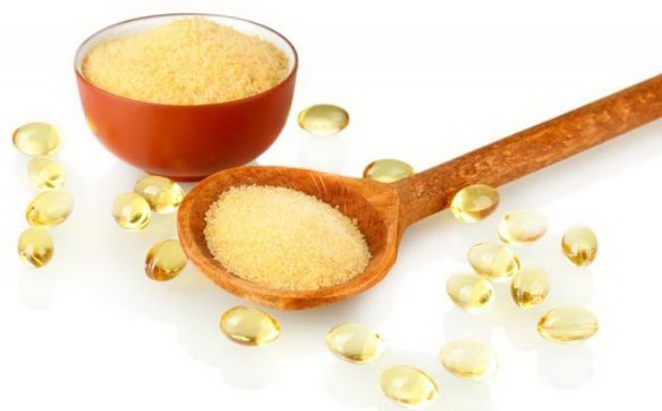 - gelatin is dissolved in a small amount of warm water and honey is added;