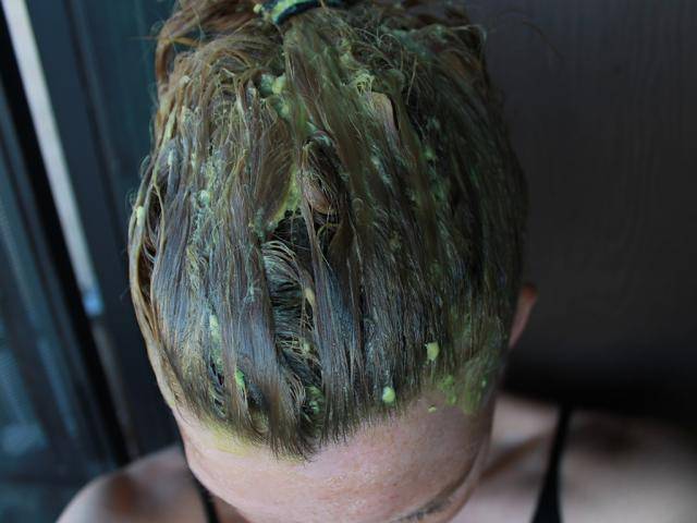 - substance should be rubbed into the hair with your hands, it is better to wear them in rubber gloves - it will be hot;