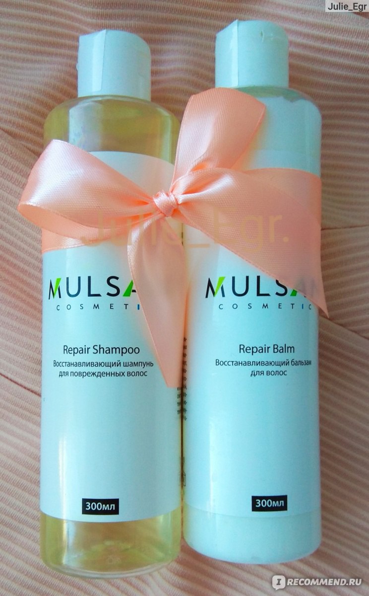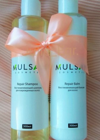 - Mulsan Cosmetic Repair Shampoo and Repair Balm - the best set of the entire line, shampoo and balm without harmful components in the composition of the products. A set for the prevention of hair loss, a good complex for sick and weakened strands, protecting them from negative environmental factors.
