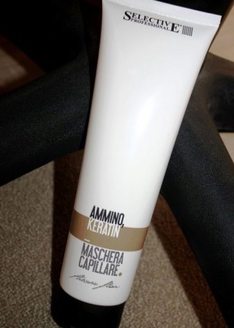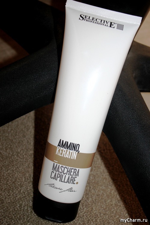 - Ammino keratin selective - a professional mask with a complex of keratin acids and provitamin B5, returning their health and vitality to the curls.Fills the hair voids, and therefore is well suited for damaged strands.
