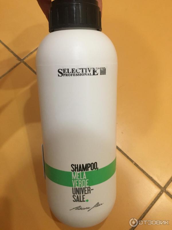 - Selective professional mela verde - shampoo with green apple extract for curls of a normal type with a delicate cleansing, providing moisturizing of the hair and root zone. It gives the strands shine, silkiness, even the naughty hairs.
