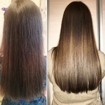 This effect contributes to the fact that the scales that are in the balance, smoothed. Outwardly, this is manifested by the fact that the hair looks smoother and shinier.