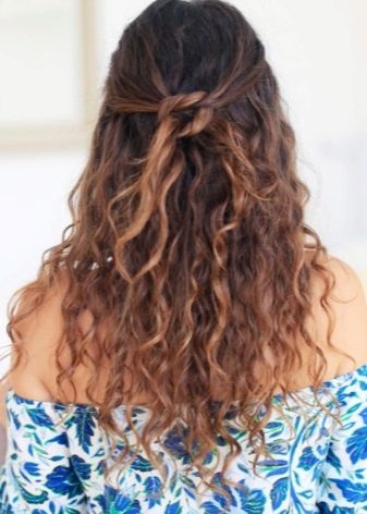 - Creating hairstyles. Especially beautiful on curly hair look hairstyles with the released curls. Natural curly strands add volume to the hairstyle and femininity of its owner. In this regard, one of the most common hairstyles for curly hair is a "French fountain", consisting of braids and loose curly strands.