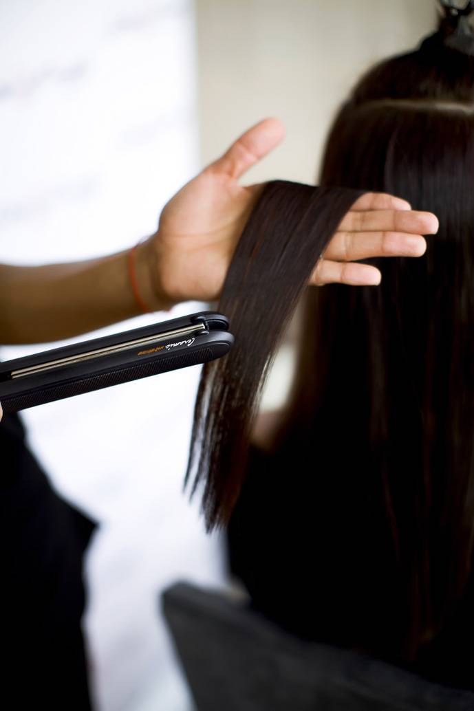 - After the end of the final stage, the strands are straightened with an iron, in order to consolidate the effect and "solder" split hairs. It is worth paying attention that without “soldering” the whole screening procedure of care will lose its meaning. You do not need to fear that you will damage your strands, as the applied Estel formulations will give your hair all the protection they need from the excessively hot ironing temperature due to the care substances.