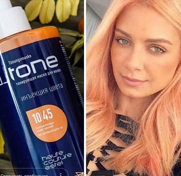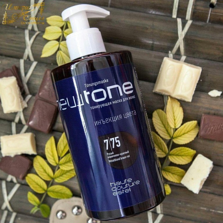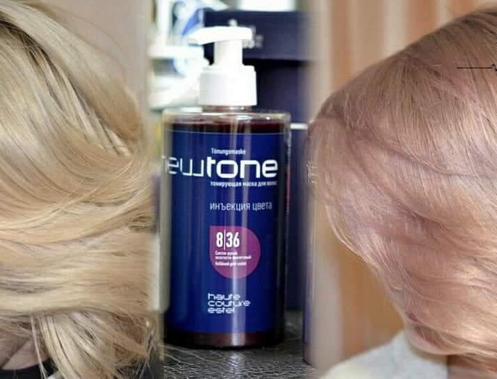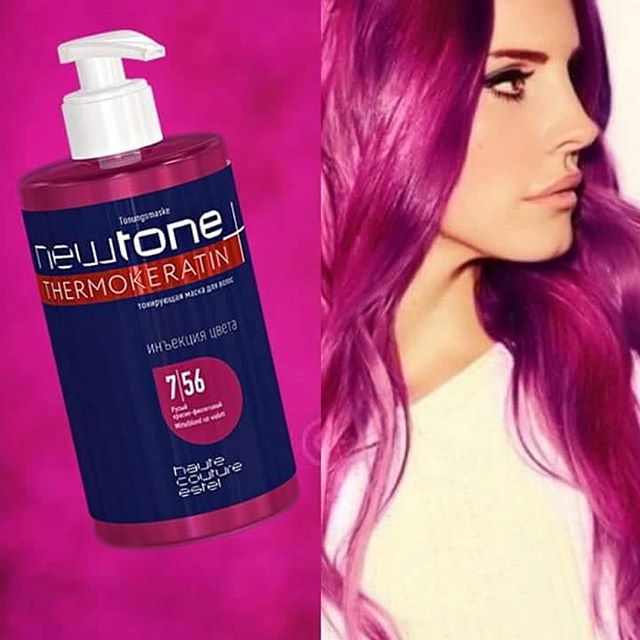 In addition, the brand Estel has released a series of tinting masks "Color Injection". NEWTONE THERMOKERATIN HAUTE COUTURE, in addition to the thermoactivator, in addition to the shading effect, nourishes the hair with keratin, smoothes their structure. The product has an economical consumption, a convenient bottle design and a reasonable palette that allows you to choose the right shade for any hair color. A yellow-colored shading mask is purple in appearance, but it gives a wonderful effect of ash curls as a result.