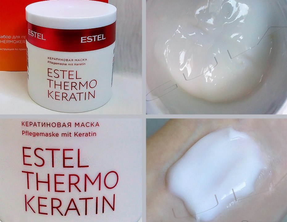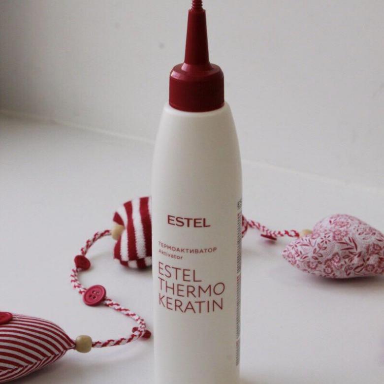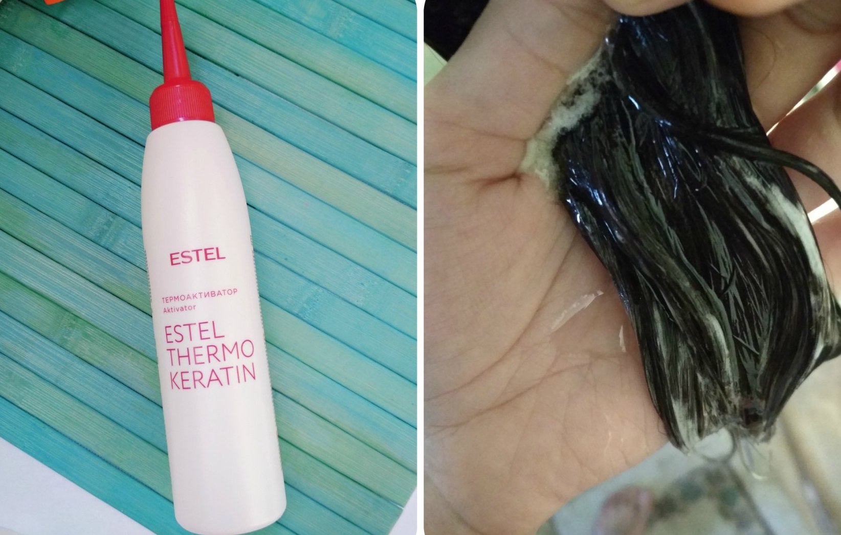 Innovative thermokeratin, unlike conventional keratin, does not need to use the iron. Estel Thermokeratin is unique in its special composition. The interaction with thermal activator leads to the development of moderate heat, it also contributes to a significant improvement in the process of penetration into the structure of useful components. During this gentle treatment, the hair gets thermokeratin nutrition, saturated with keratin and amino acids. Their outer surface is restored, and the scales are smoothed. This is manifested by a visual shine and a magnificent view, smoothness and density.
