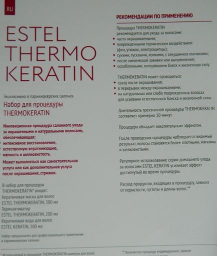 On the Estel Thermokeratin toolkit and features of the procedure, see the following video.
