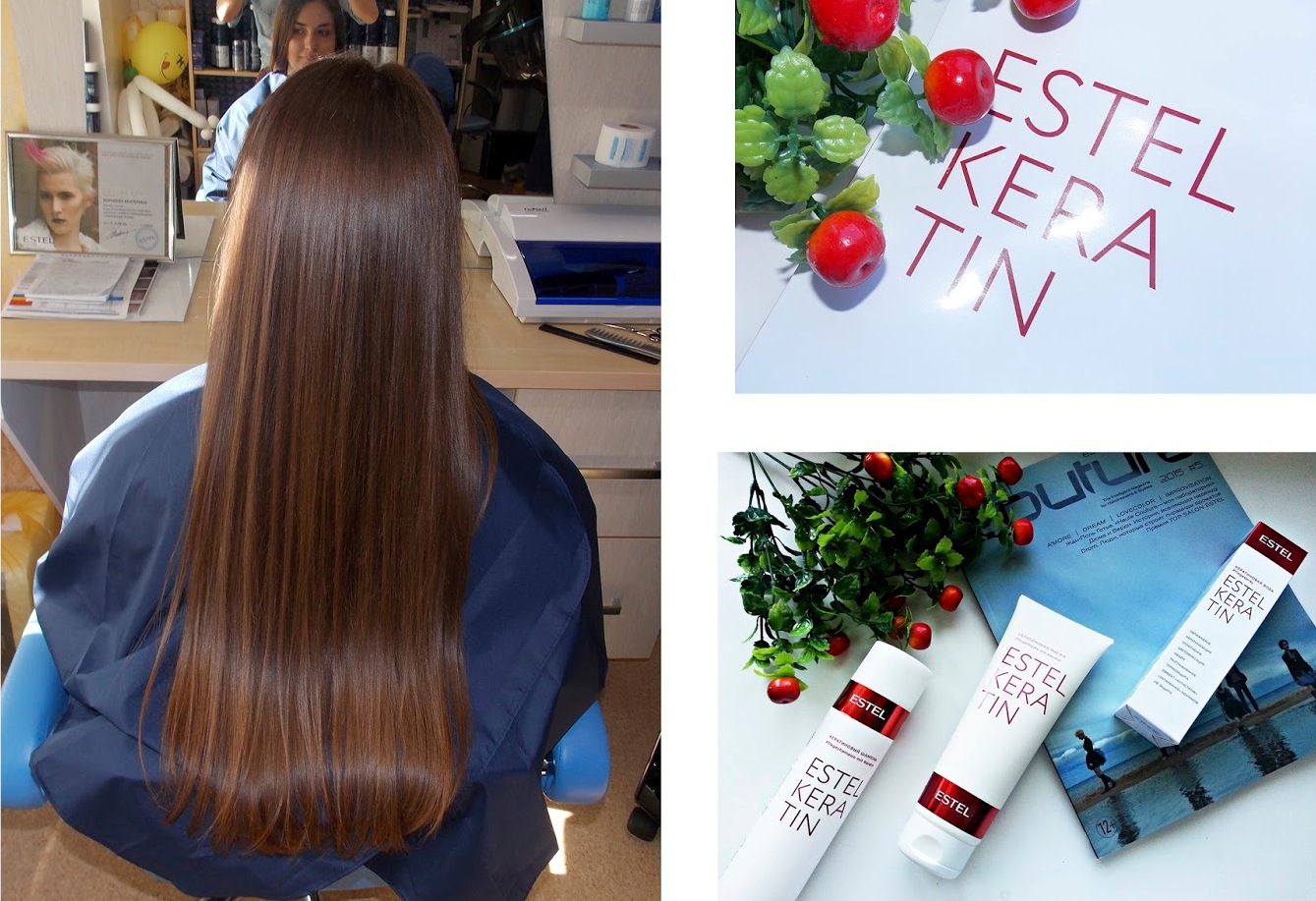 With each subsequent procedure, the Estel complex more and more clearly shows its positive effect on the strands. And with keratin, the color after painting is fixed for 2-4 months.