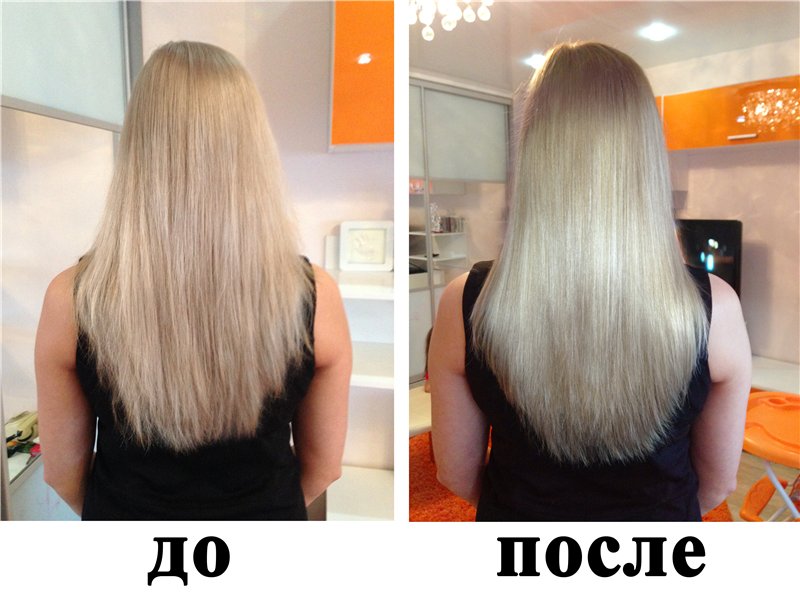This treatment procedure can help restore even the most affected locks. Visually, the hair appears thicker, and all existing damaged areas are filled. This condition of the hair pleases its owner up to three months.