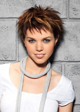 This hairstyle is done by the owners of short haircuts, the essence lies in the texturing of individual strands. To perform such styling, you should take a small amount of gel, distribute it on your hands and rub it into your hair, and then put it in the usual way using a comb and hair dryer. At the final stage you should scoop up a little more gel and form separate strands with your fingers, fixing them in the right direction.