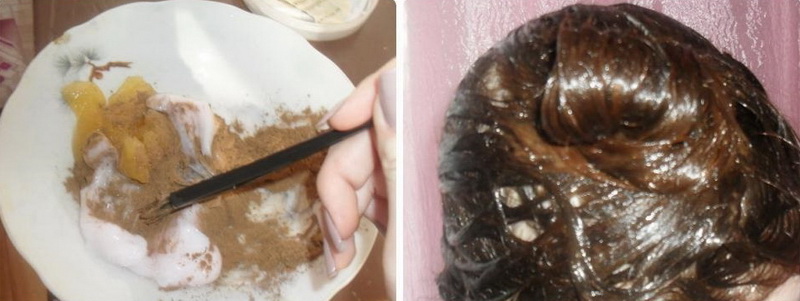- Cinnamon is a component that can not only brighten, but also color the strands. If you apply it to lighter curls, then in the end you can achieve an unusual and attractive reddish tint.
