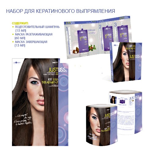 As a rule, such sets include a set of tools for performing the procedure on their own: this is a cleansing shampoo, a hair keratinization agent itself, sulfate-free shampoo, hair conditioner balm and detailed instructions.