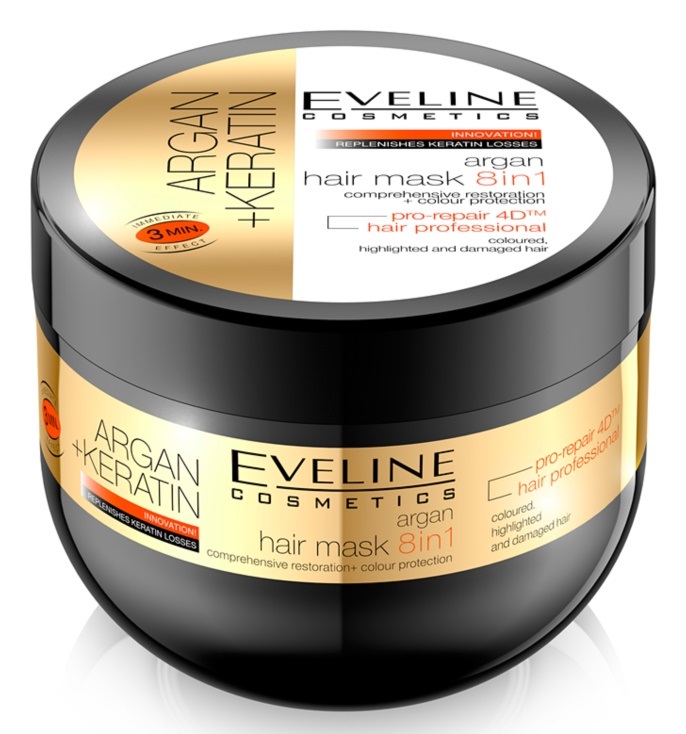 - Eveline - affordable tool, which includes not only keratin, but also argan. Advantages - the presence of a positive effect after the first application.