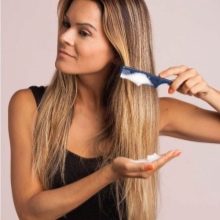 - Washed and dried hair gently combed with a comb with rare teeth.