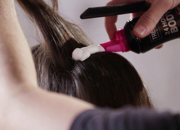 - To give the volume to short hair, a small amount of foam is distributed on both palms and applied to the hair from the roots to the ends. Then the curls are slightly dried with a hairdryer, lifting them from the roots and giving them the desired volume. This method is well suited for both women's and men's styling, which can be performed not only with a comb, but also with your hands.