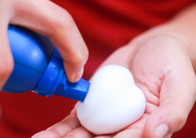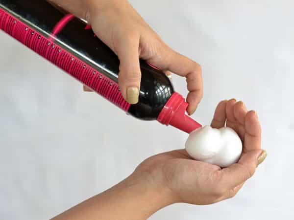 - The mousse bottle is shaken, and then the required amount of the product is squeezed onto the palm.