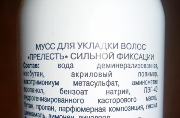 The effectiveness of using fixatives depends entirely on their chemical composition. So, hair styling mousses consist of biopolymers that give curls a natural look and make them bulky. Another important component of the mousse are protective additives that prevent the negative impact of external factors on the hair structure. Supplements are presented in the form of glycerin, which moisturizes the structure of the rods, and panthenol, which protects the curls from the desiccating effects of electrical appliances used for hot styling.