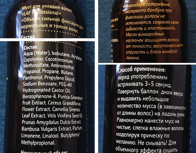 - Thanks to a special formula, the tool does not glue the strands and allows them to look quite natural. However, improper use of mousse can cause the opposite effect, which makes it necessary to carefully read the instructions before applying the preparation.