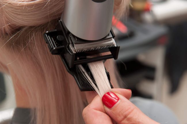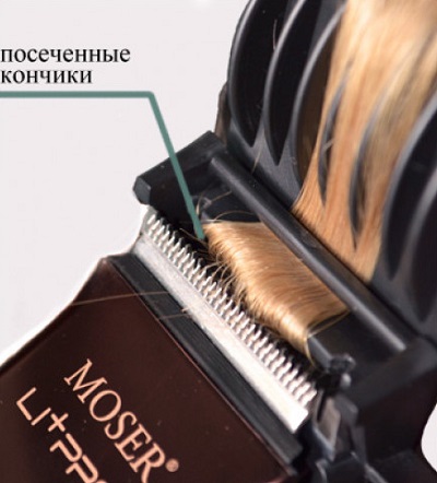 During the process itself, the curls that are in the clamp are bent several times. Thus, during the hair tension all the necessary conditions for their polishing are created. In this position, the damaged hair particles protrude, and the blades of the knives instantly cut them off.