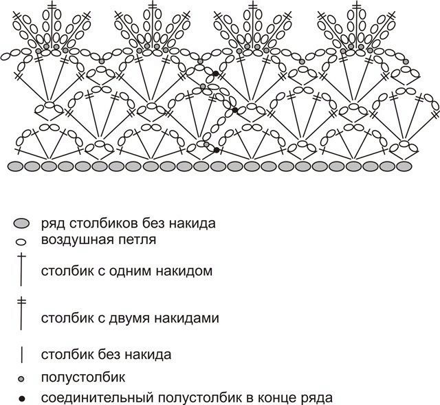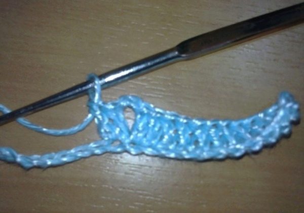 - 5 row - with one loop, tie two columns with two crochets, an air loop, etc.