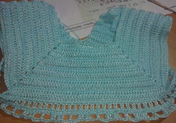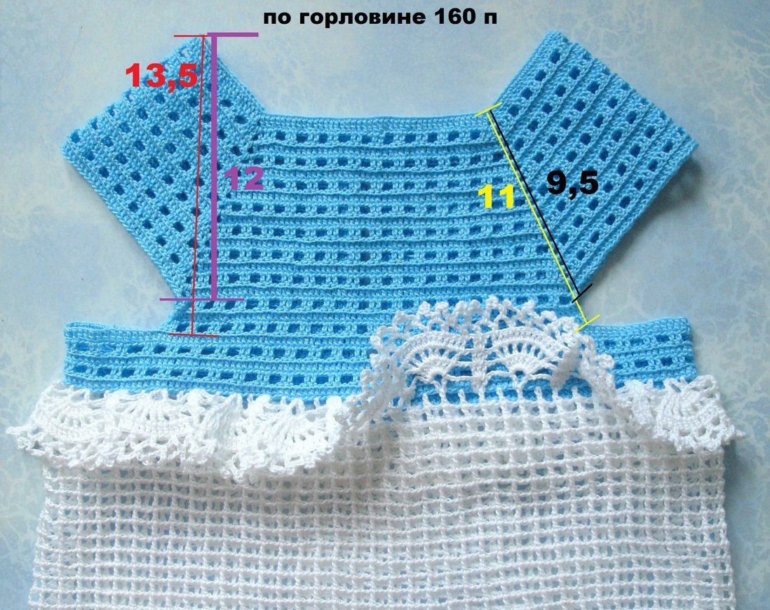Dress start to knit from the belt. It consists of double crochets. Then knit up to the depth of the armhole with any pattern you like pineapples by the measurements or patterns.