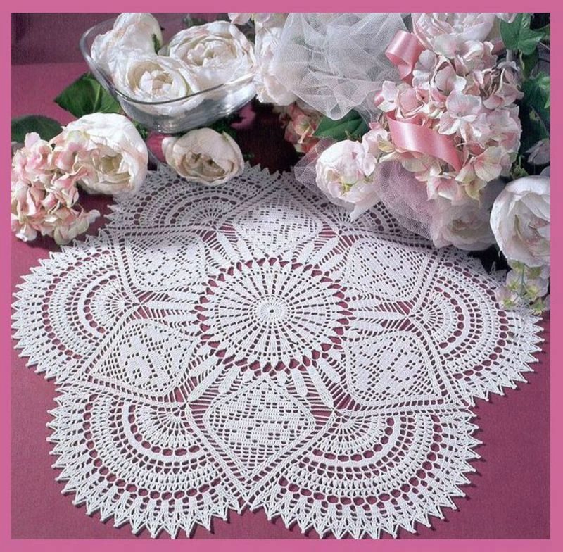 In most cases, the motifs for the skirt are taken from the schemes of napkins or tablecloths. For example, such a lace pattern would be ideal for a festive dress.